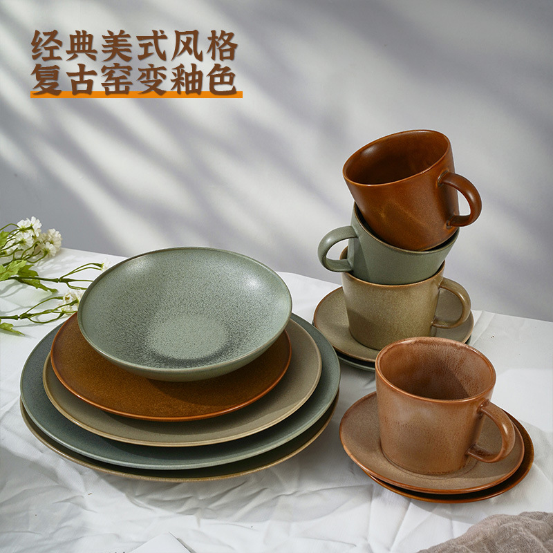 カスタマイズされた窯変セラミックディナープレートホテル西洋サラダスープボウルコーヒーマグアメリカンボウルとディッシュ食器セット