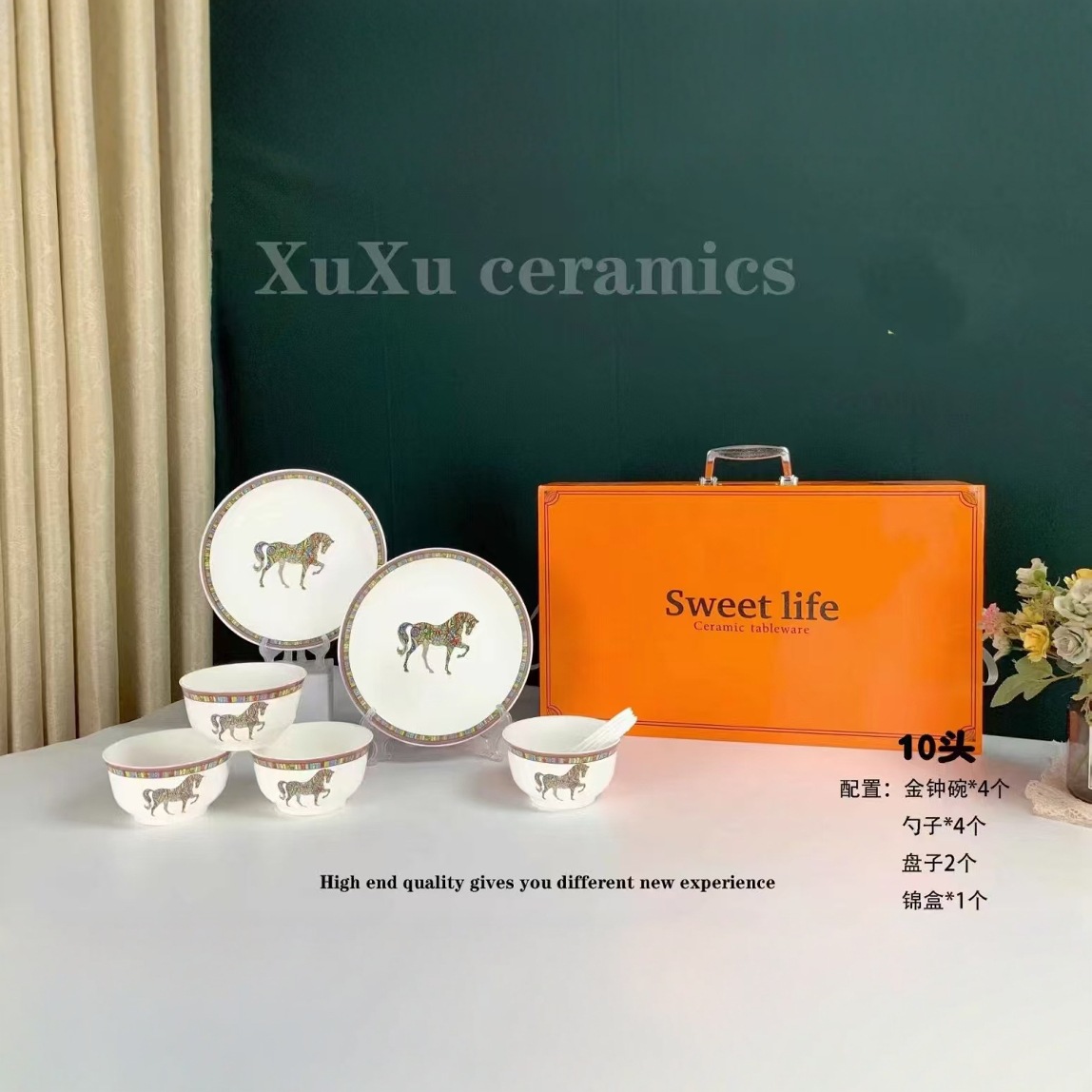 ヨーロッパ式骨磁器食器皿皿スプーン十点セット高級二人食事ギフトボックス
