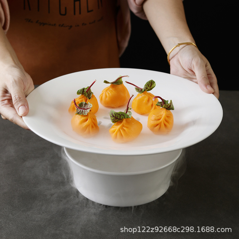 ドライアイス盤ホテルの創意食器陶磁器の境地料理の私室ホテルの商用は皿の美しい高級なレストランの円盤を並べます。