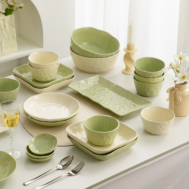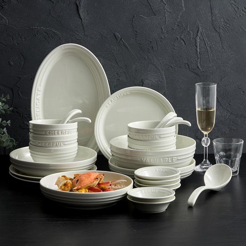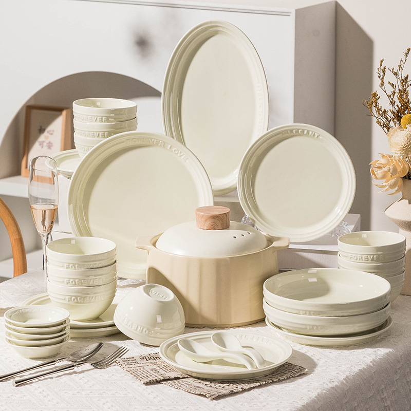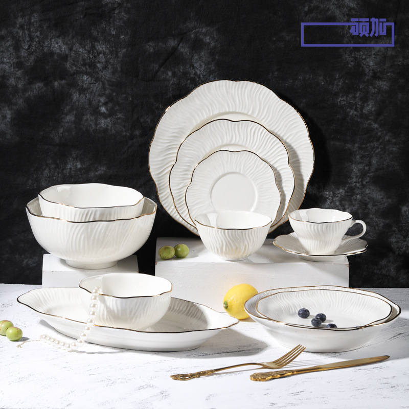 軽豪華高颜値クリーム風碗皿セット家庭用高級感陶磁器碗皿スープ碗魚皿碗セット