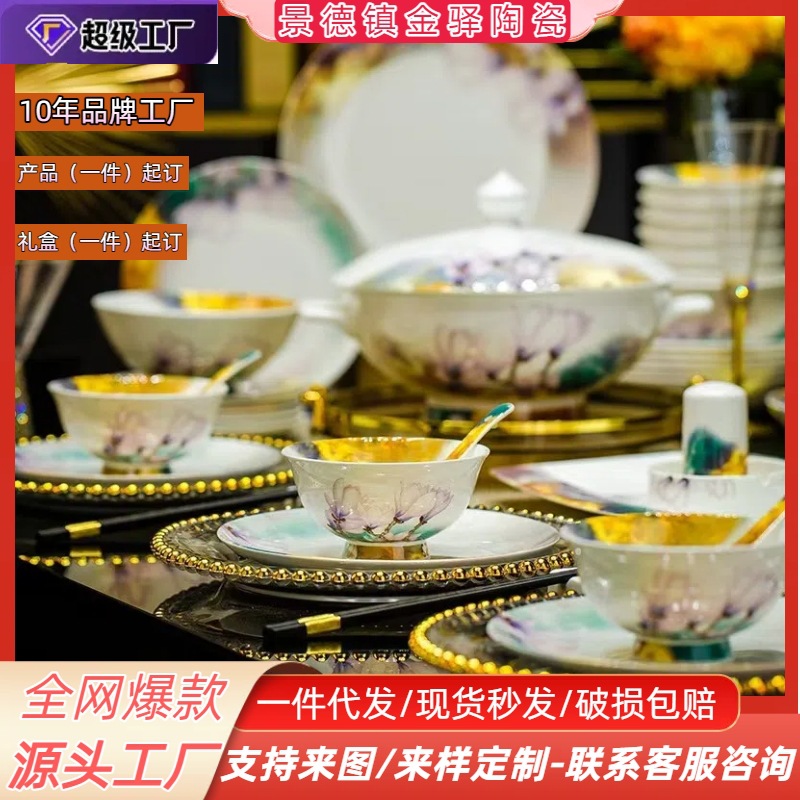 2024新型景徳鎮高級骨磁器食器ギフトセット中国式家庭用新婚食器皿