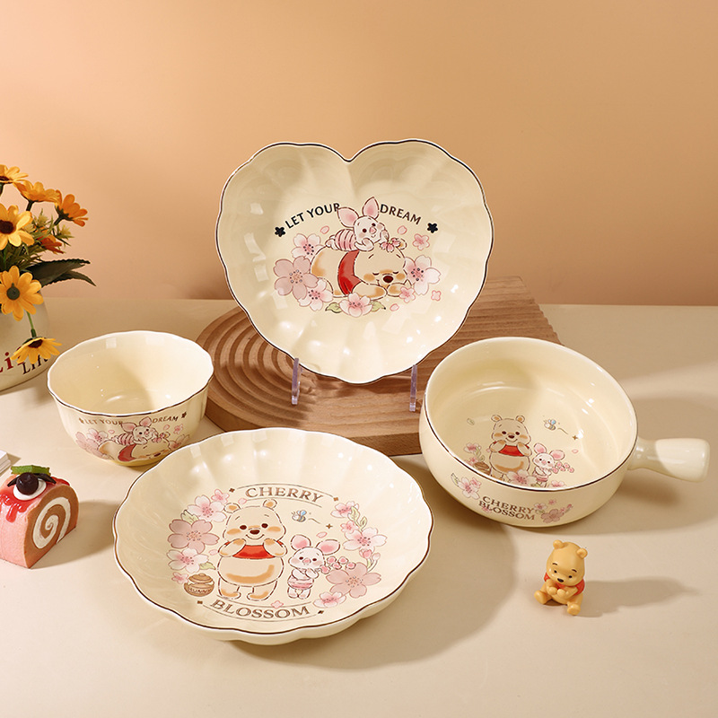 ディズニーくまのプーさんセラミック一人用食器セットかわいい食器セット家庭用ギフトボックス漫画高級新品卸売ボウル
