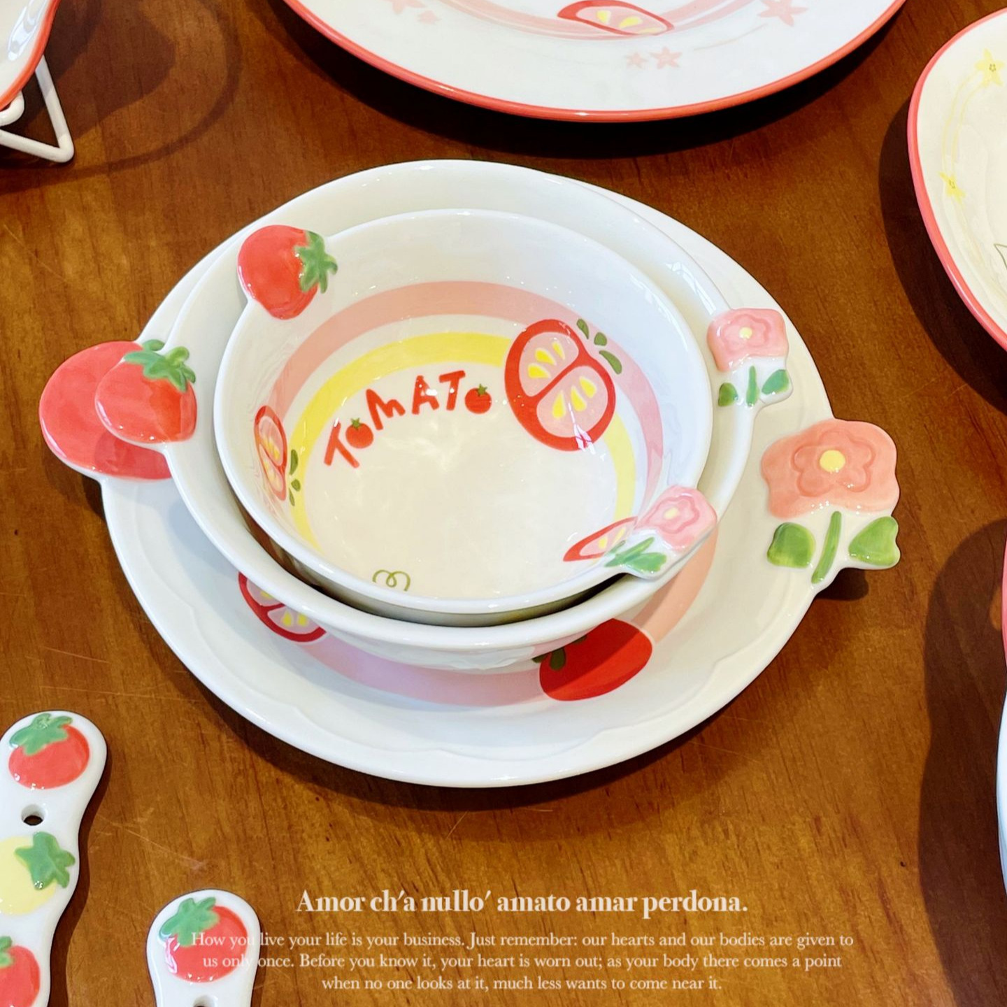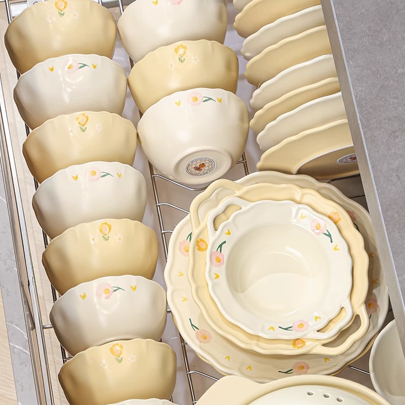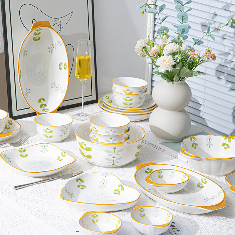 高颜値陶磁器食器セットご飯ボウル大スープボウル魚皿家庭用サラダボウルかわいい釉薬下彩水カップ