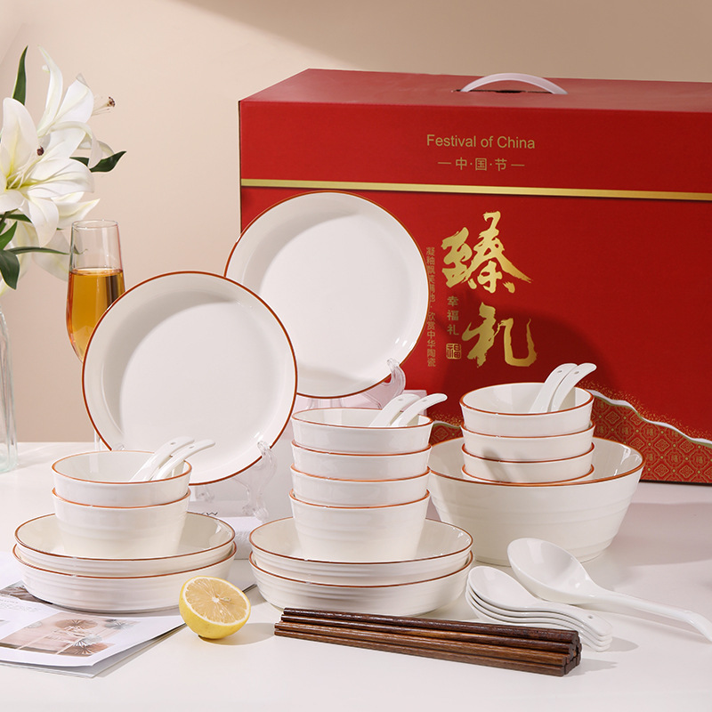 景徳鎮セラミック皿とプレートの組み合わせホームギフトボーンチャイナ食器と食器セット新築祝い福祉ギフト卸売