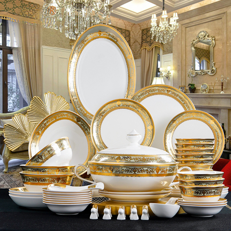 ヨーロッパ式の豪華な骨磁器の食器セット家庭用景徳鎮の陶磁器の食器セットの高級感があります。