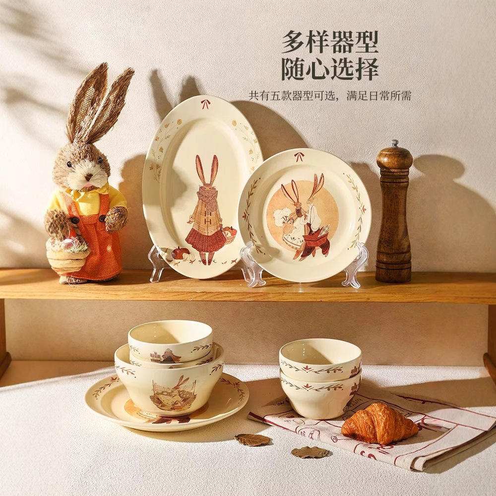 家族シリーズ陶磁器食器セット家庭用レトロ食器皿セットアニメ陶磁器食器セットギフトボックス