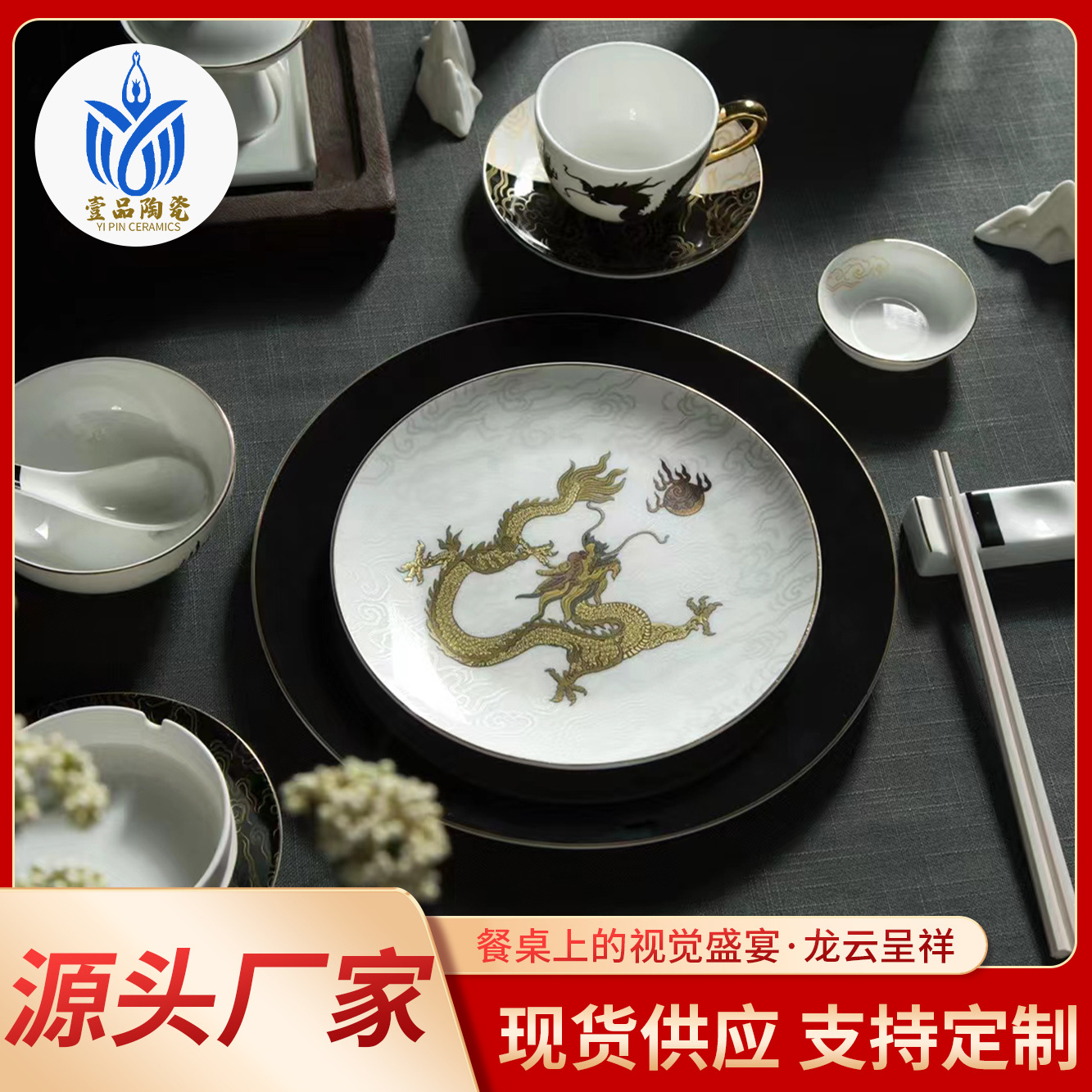 ホテル食器龍雲呈祥風陶磁器食器セット創意碗皿皿高顔値碗箸セット食器