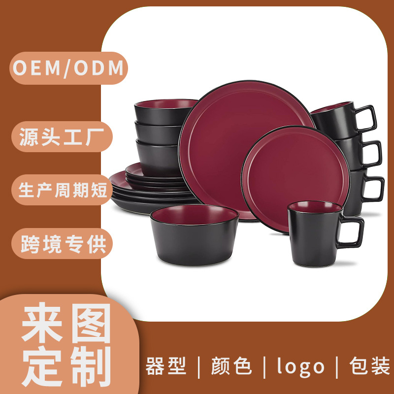 対外貿易輸出色釉薬16 dinnerware set陶磁器食器セット創意洋食ステーキ皿杯
