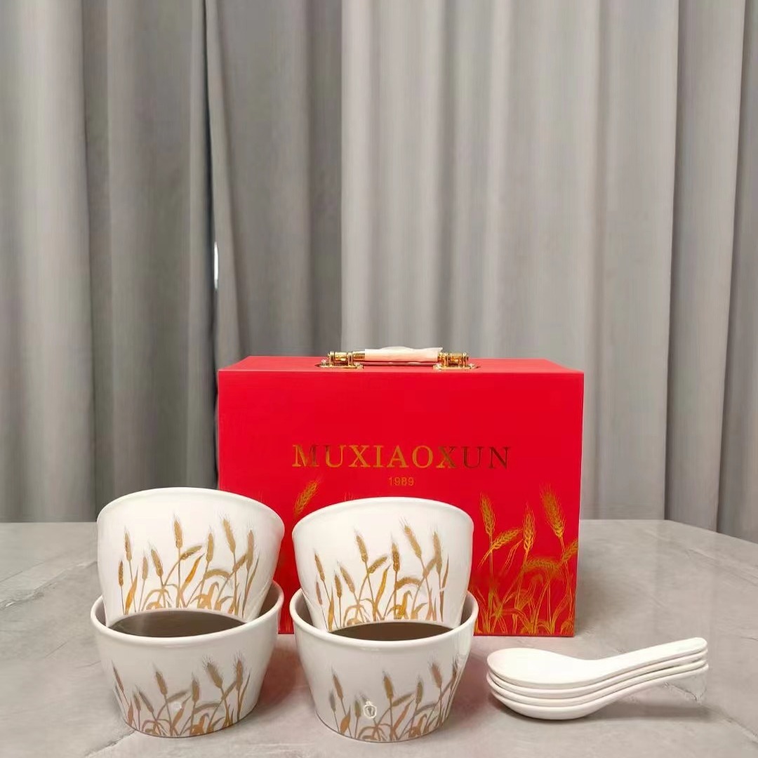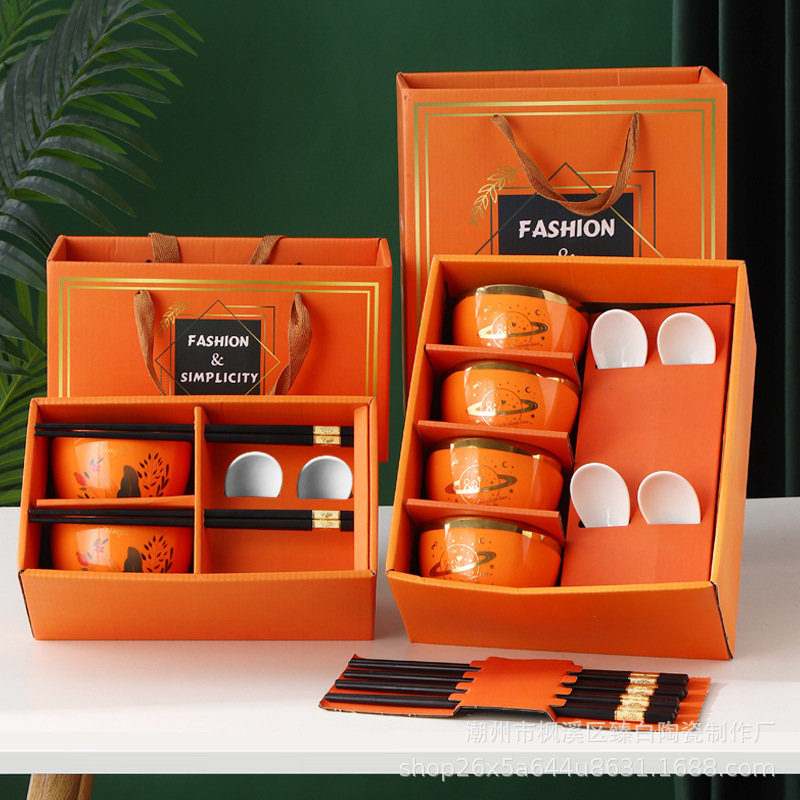 メーカー卸売り高級ビジネス創意プレゼント陶磁器碗陶磁器食器セットネット赤碗箸スプーンセット