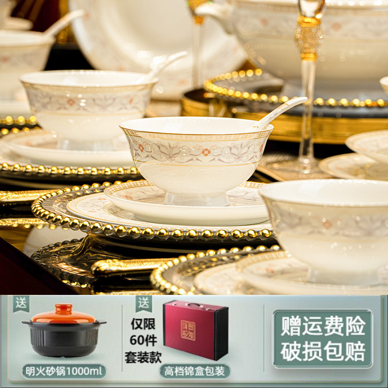 景徳鎮陶磁器食器セット新型家庭用高級感碗皿セット