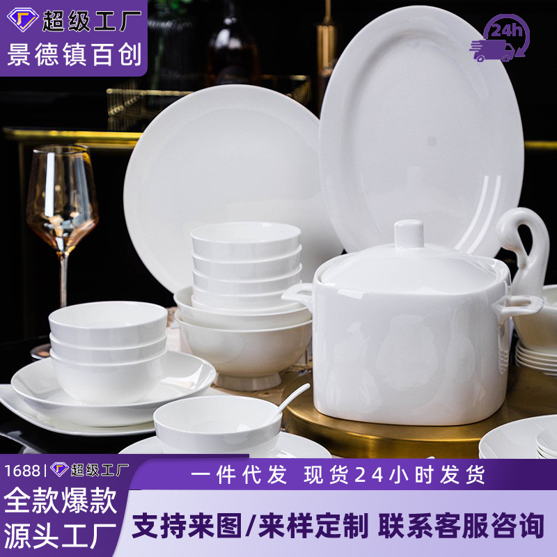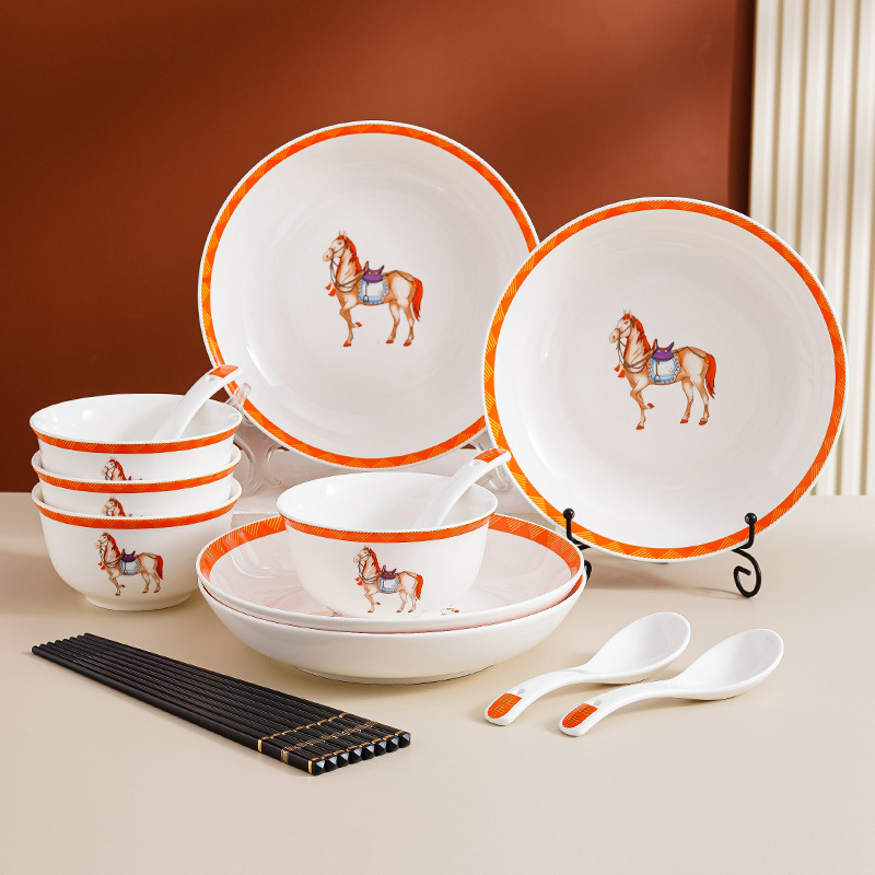 新年ギフトに最適なシンプルな陶磁器食器セット、ボウル、皿、箸、スプーン、開店祝い、年次総会イベントの記念品