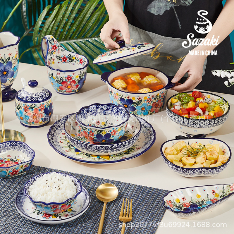 ボヘミアン陶磁器食器馬拉客何碗皿北欧レトロ洋食皿軽豪華家庭用釉薬碗皿
