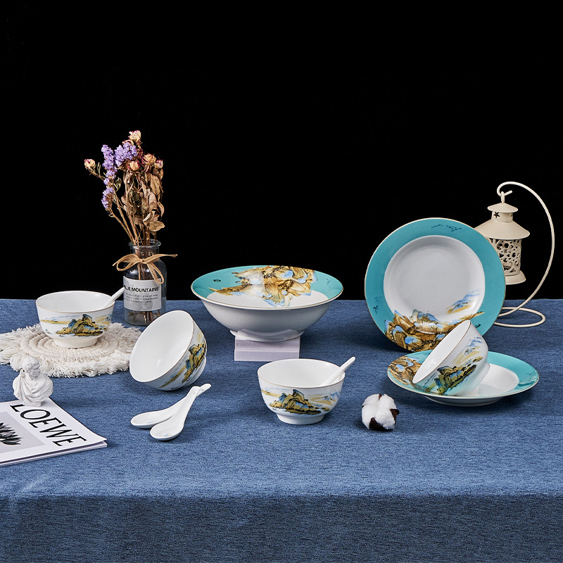千里江山食器セット陶磁器食器セット家庭用組み合わせビジネスプレゼント16点セット食器セット