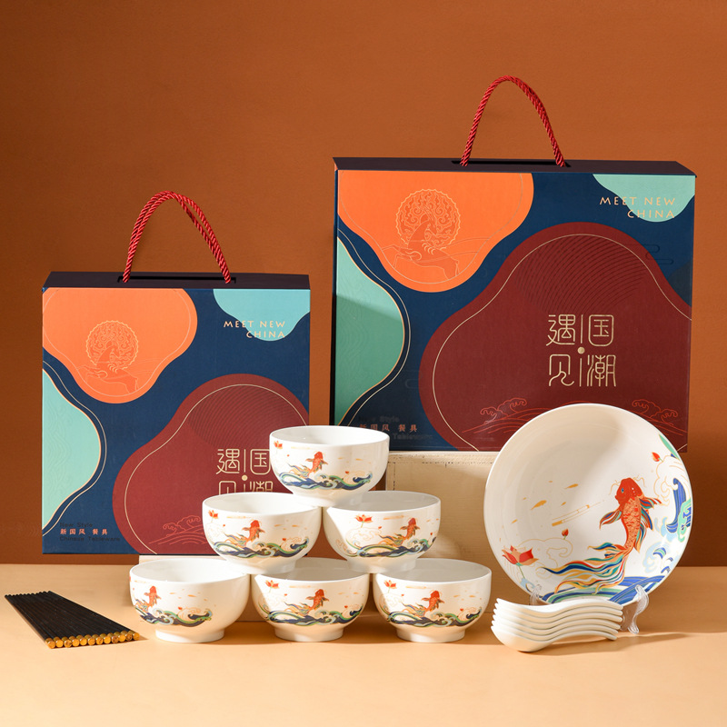 国潮新中国式陶磁器食器セット高颜値皿骨磁器セット開業お土産に出会った