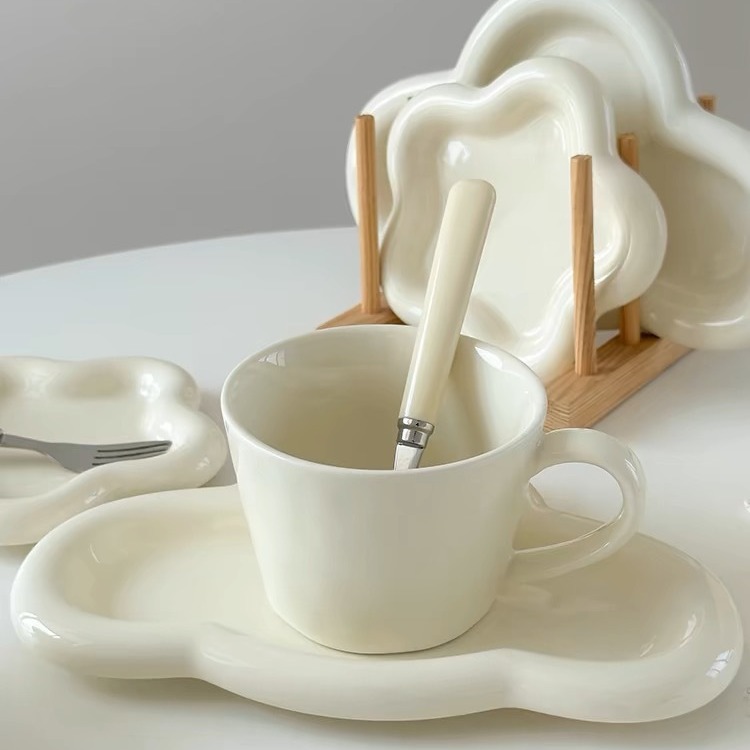 ミルクfufuシンプル個性セット釉薬下彩家庭用クリーム風実用高颜値食器皿セット