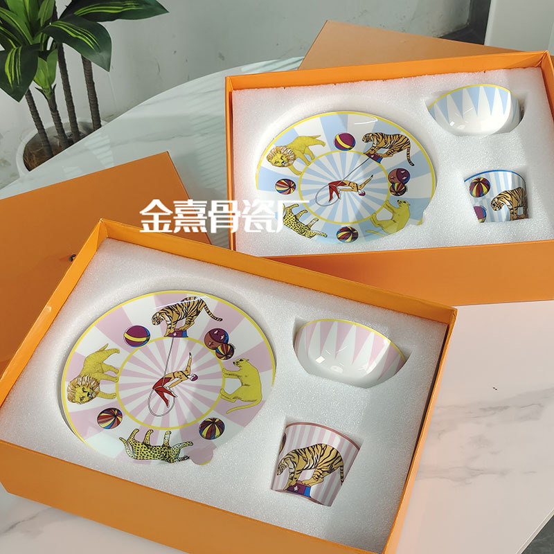 クロスボーダーヨーロピアンスタイルのライトラグジュアリーで楽しいサーカス4ピース食器セット、家庭用子供用食器ギフト、新築祝いのお土産バッチ