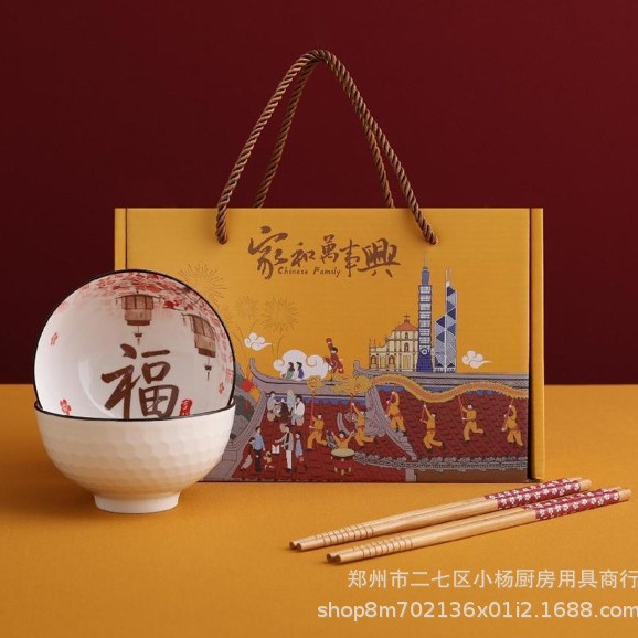 Jutaorjiahe Wanshixing 吉祥福シリーズセラミックボウル、プレート、スプーン、箸、食器セットギフト卸売