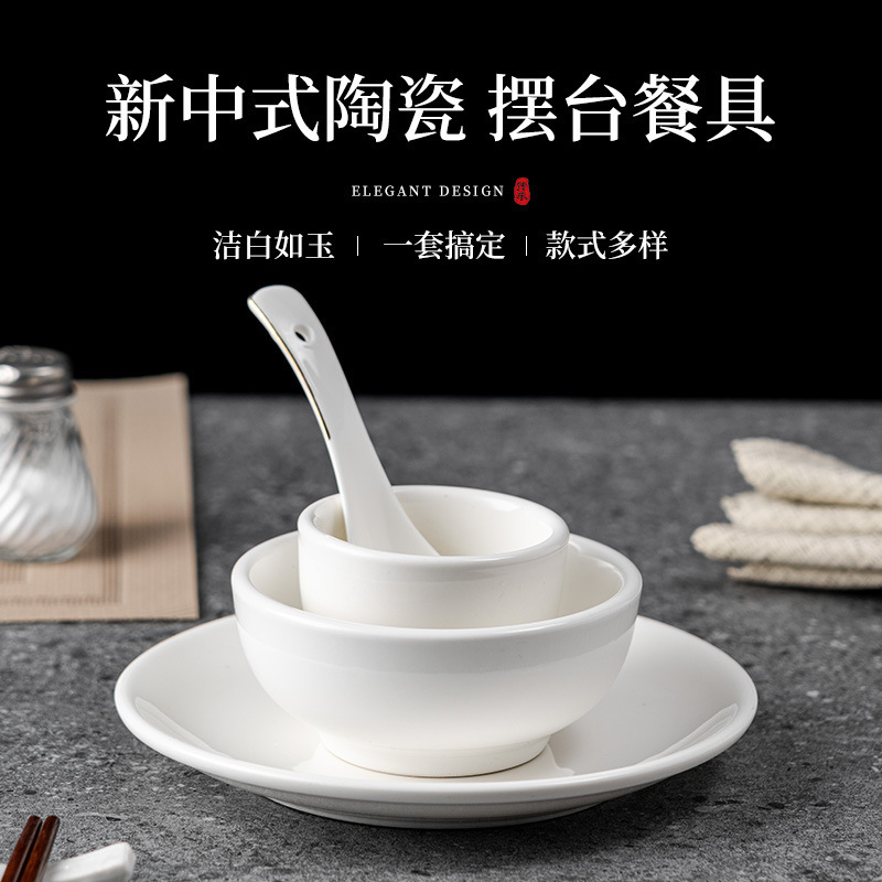 家庭用建材ギフト食器景徳鎮釉高白磁家庭用陶磁器食器厚みのあるボウルとプレートのセット