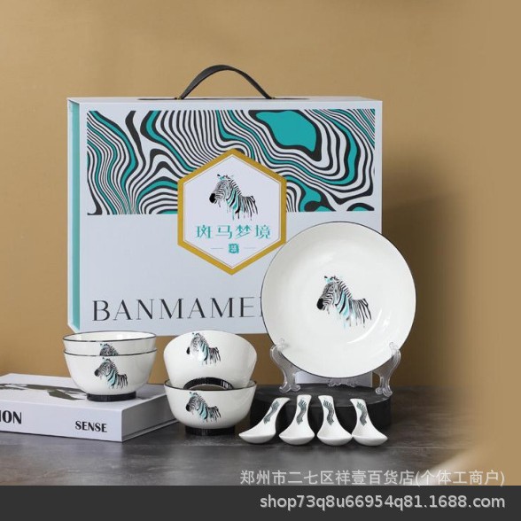 リーダーゼブラドリームセラミック食器セットオープニングイベント便利な福祉ギフト卸売実用的なボウル、プレート、スプーン