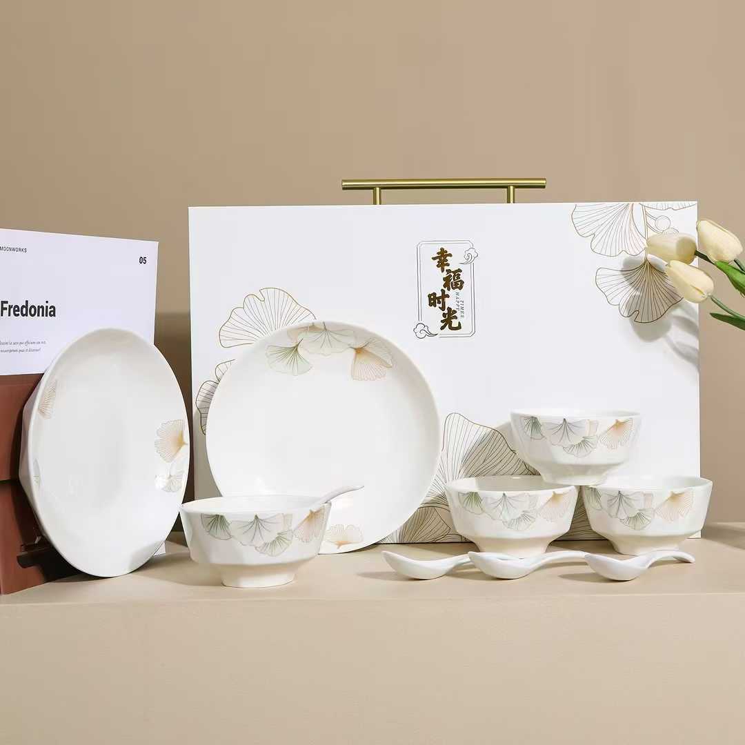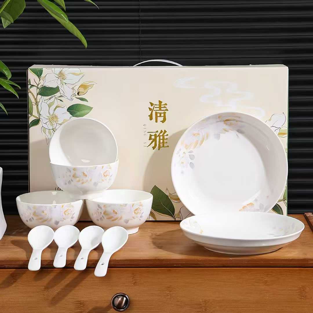 Qingya 10 ピースセラミックボウルとプレートセットビジネスイベントギフト卸売顧客のお土産ギフト