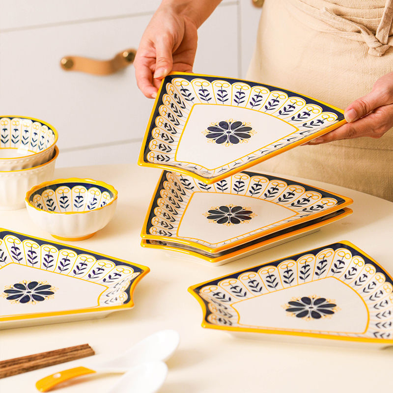 セラミック大皿パーティーディッシュ食器セット扇形プレートスープボウル付き大晦日の夕食家族の食事高級食器