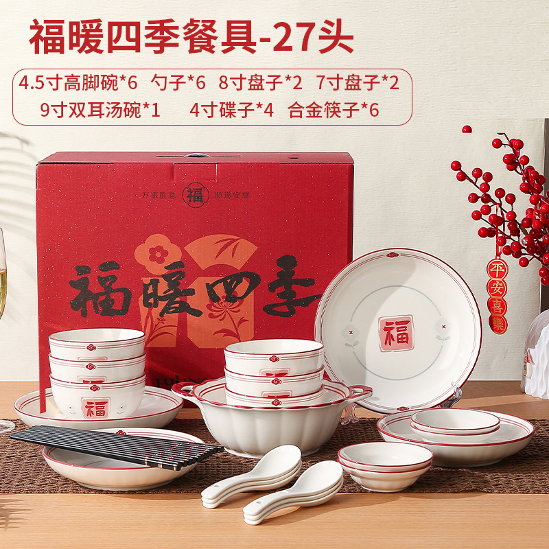 Yuhao Fu ウォームフォーシーズンズ食器 27 ピースクリエイティブホームセラミックボウル、プレート、スプーンビジネスイベントのお土産新築祝いギフト