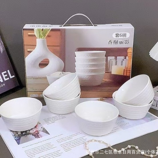 卸売クリームボウルと皿セット 2024 新しい家庭用ライスボウル食器スープボウルクリエイティブボウルと皿セラミックボウルと箸新築祝い