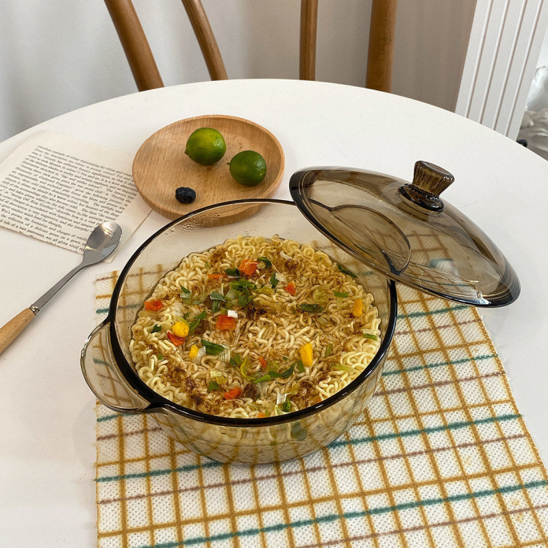 両耳ボウル 茶色の蓋付きガラスボウル 家庭用インスタントラーメンボウル 大型ヨーロピアンスタイルの高価値ボウル 寮用大ボウル