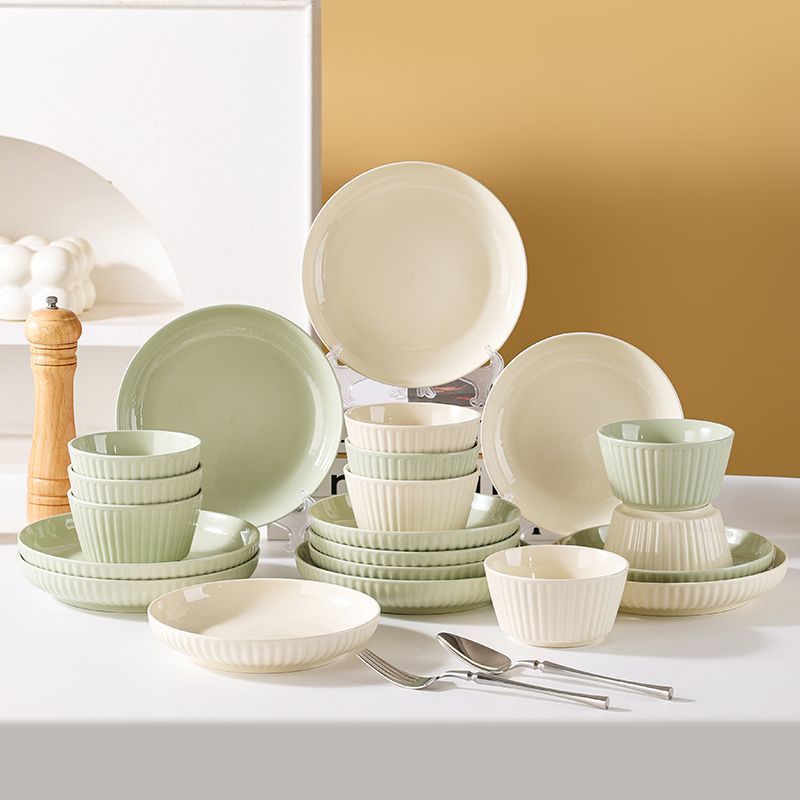食器セット家庭用 2025 新しいライト高級新築祝いボウル、皿、箸、ボウル、高級感のあるセラミック無地食器