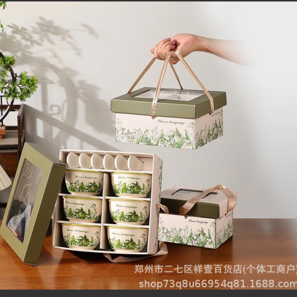 Jianyuan セラミック Moshanghuakai 食器セット ギフトボックス セラミック食器 食器 スプーン ギフトボウル コンビネーション 実用的なギフト