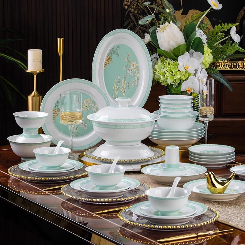 景徳鎮釉色白磁食器セット、健康で実用的な丼、皿、大スープポットの組み合わせ、新築祝いのお土産