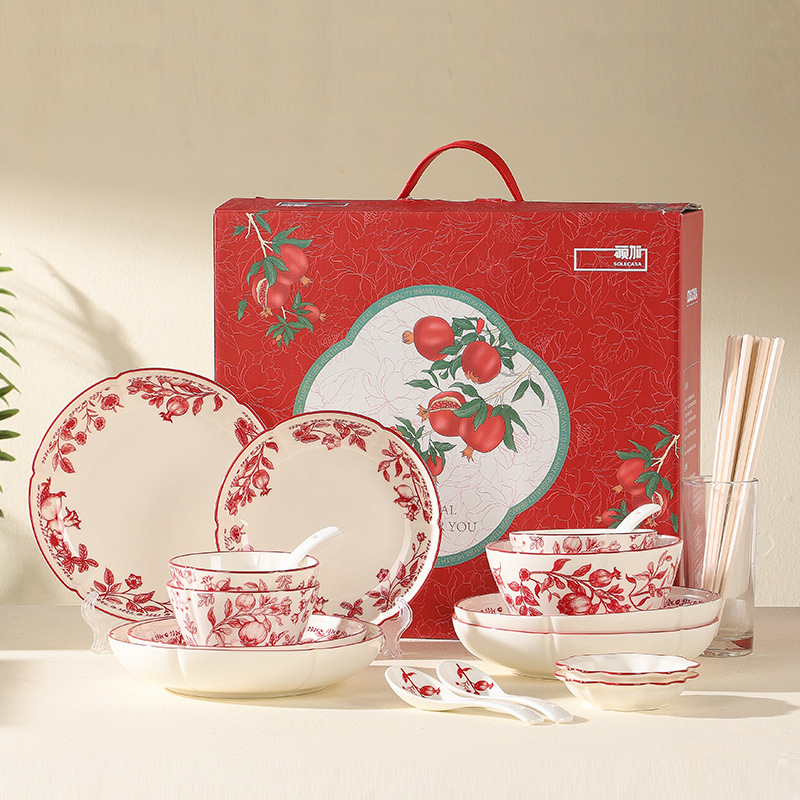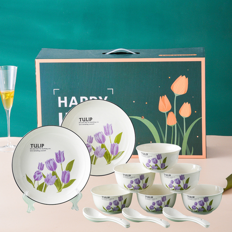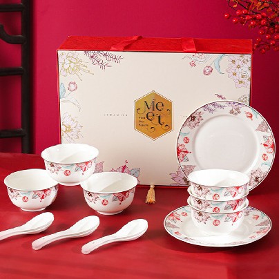 Meishang Lianhua 磁器ギフトボックスセット家庭用ボウル、プレート、スプーンクリエイティブセラミック食器ビジネスストアお祝いギフトグループ購入