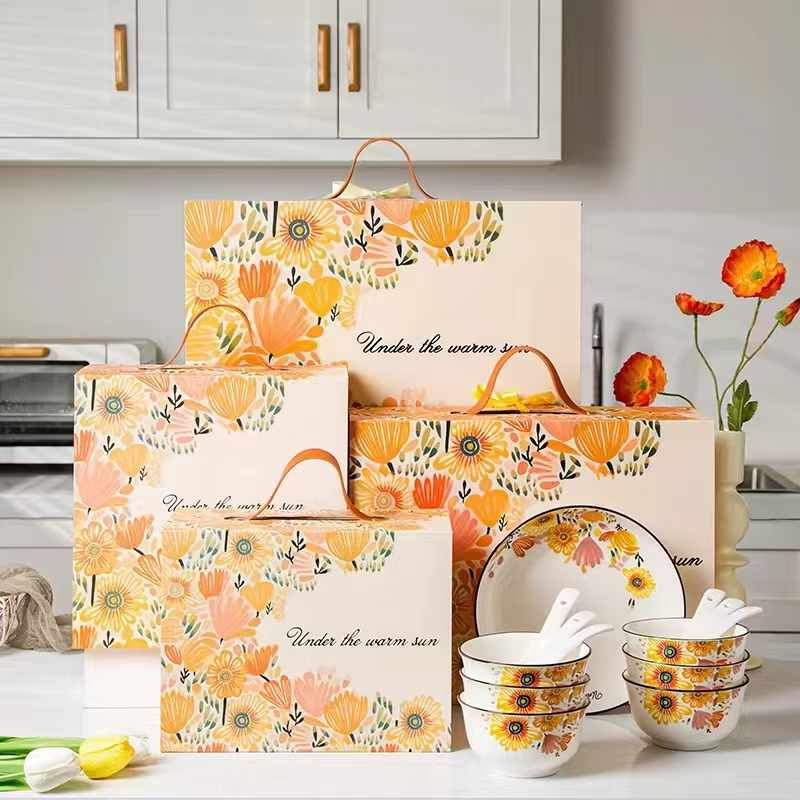 Meishang ひまわりホームボウルとスプーンクリエイティブライト高級セラミック食器セットオープニングイベント福利厚生ギフト