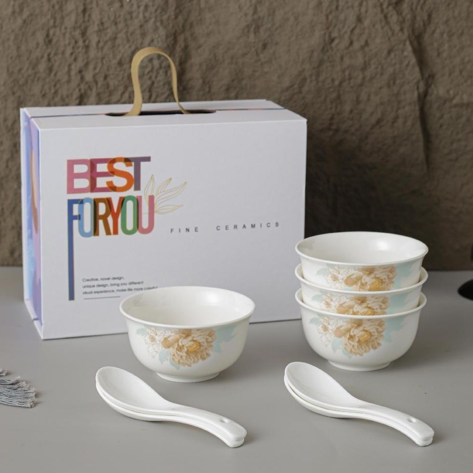 Meishang Pi'anhua クリエイティブ シンプル ボウルとスプーン 家庭用セラミック食器 ビジネス ギフトボックス 店舗ギフト シグインギフト