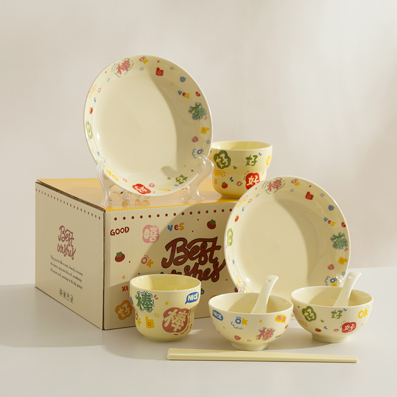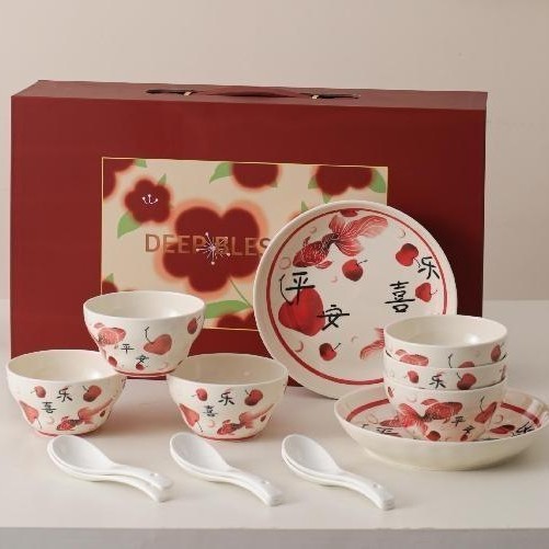 Meishang 平和と喜びのギフトボックスセット家庭用ボウル、プレート、スプーンクリエイティブセラミック食器ビジネスストアお祝い会員ギフト
