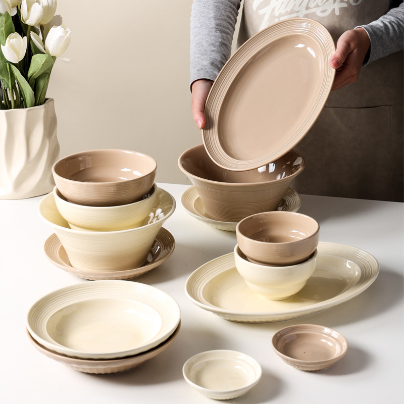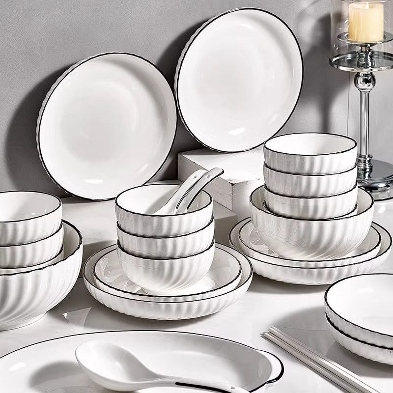 ライトラグジュアリー乳白釉セラミックスーププレート、高級感のある家庭用シンプルスタイルの食器セット、ライトラグジュアリーハイエンドコンプリートセット