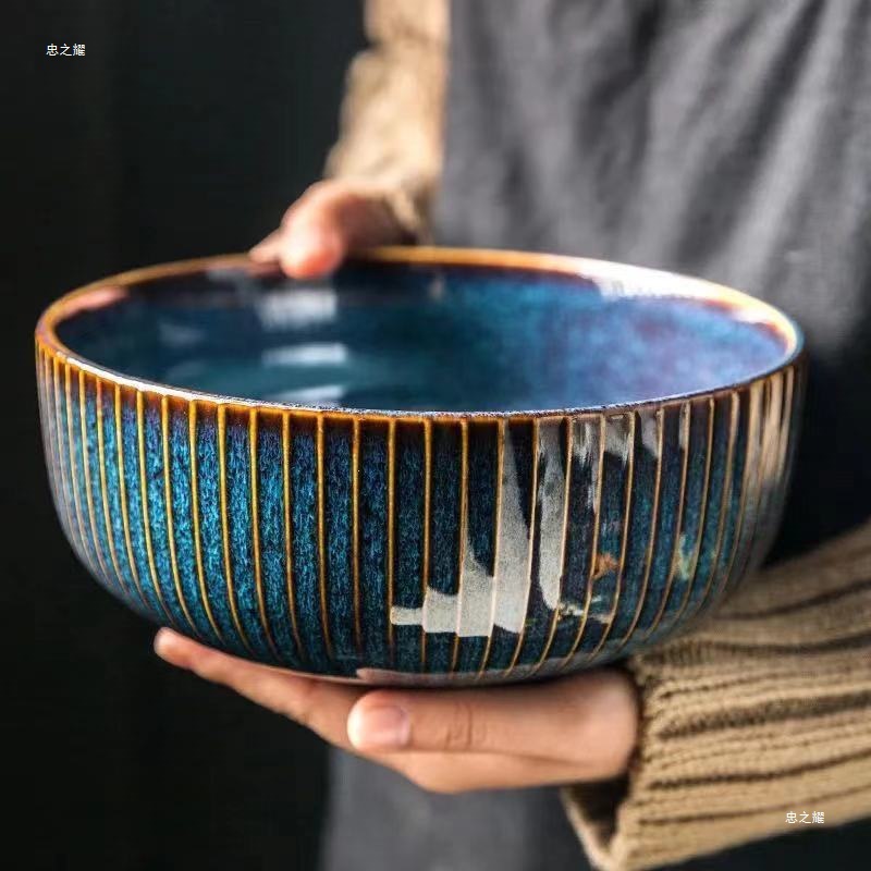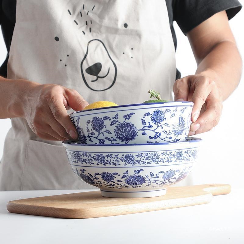 和風麺鉢、フルーツボウル、レトロスープボウル、パーソナライズされたセラミックレースフローティング特殊形状ボウル、9inch 大型スープボウル