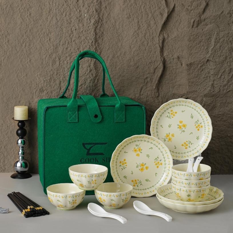 Meishang フェルトバッグセット 22 ピースクリエイティブライト高級家庭用セラミック食器ビジネスイベントメンバーシップギフトお土産
