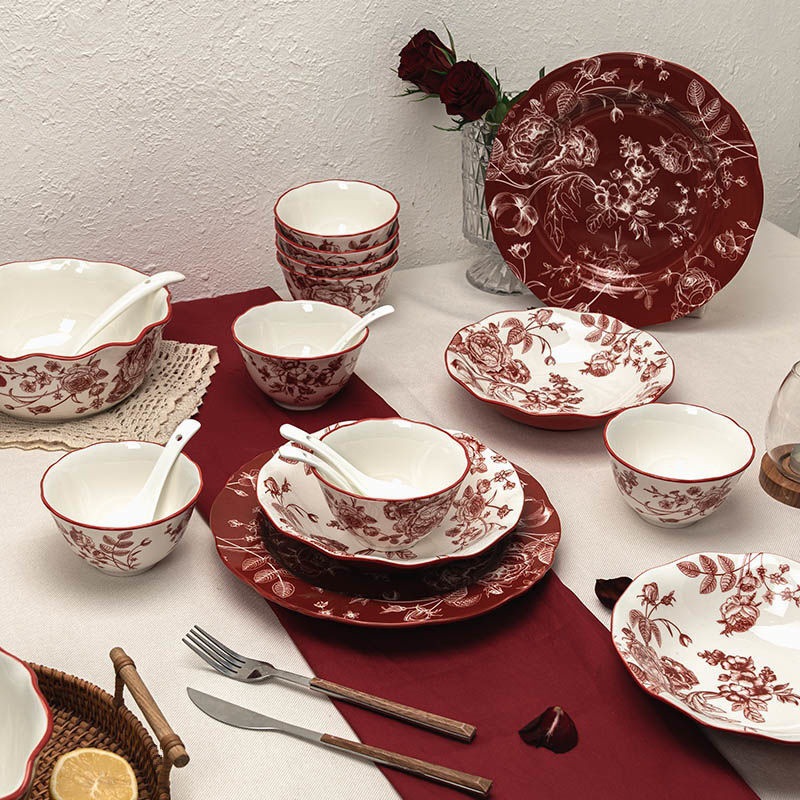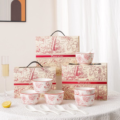Meishang レッドローズ家庭用セラミック食器クリエイティブシンプルなボウルとスプーンビジネスストアお祝いイベント福利厚生ギフト