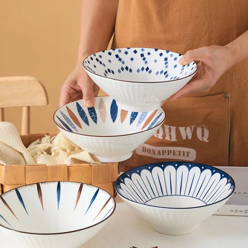 8inch ミックスラーメン斗笠セラミックインスタントラーメンボウル食器家庭用和風スープボウル高足カラーアート
