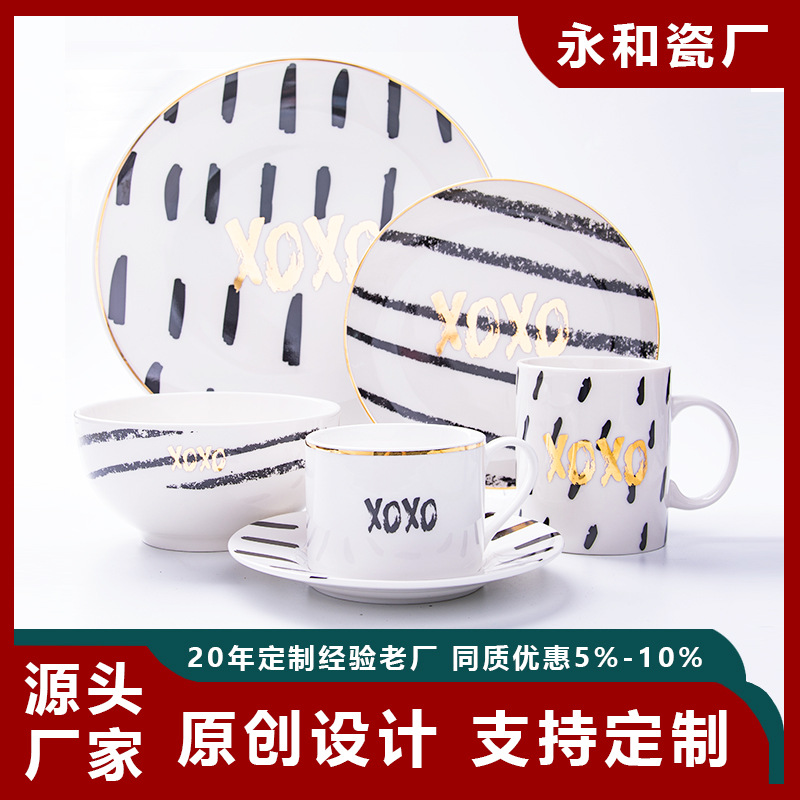 黒と白のホットスタンピングシリーズセラミック食器家庭用スープボウル北欧シンプルな水玉ストライプ高価値