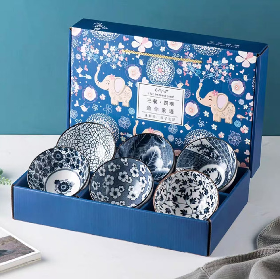 家庭用陶器ボウル、祝福丼、食器、新しい高価値セット、ボウルとプレート、ギフト食器、ボウルとプレートのバッチ