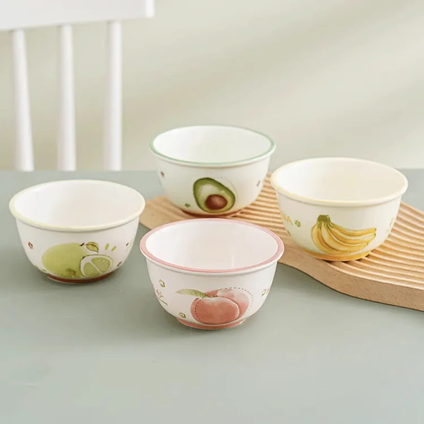 フルーツシリーズ ピーチ 高級家庭用陶器丼・皿・下絵付リボン・スプーン・かわいい食器セット ML