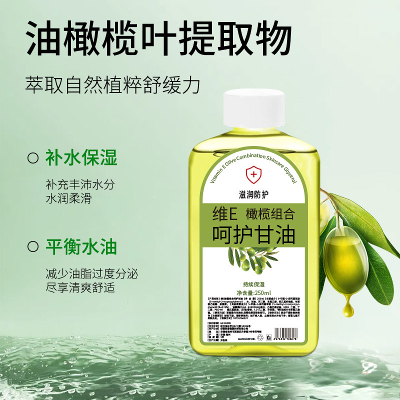 維eオリーブグリセリン瓶の皮膚は乾燥しています。