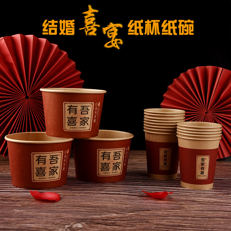 結婚用使い捨て地色紙碗披露宴酒席用使い捨て紙コップセット