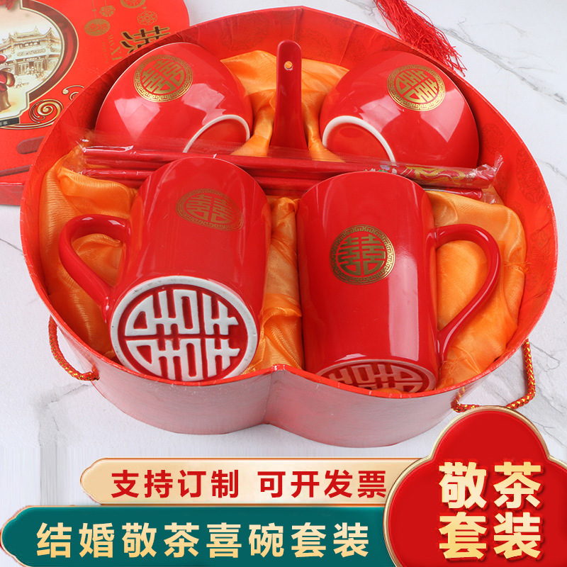 中国式喜碗敬茶杯杯拝神用品碗貢盤結婚祝い用品敬茶杯喜碗結婚式果物皿