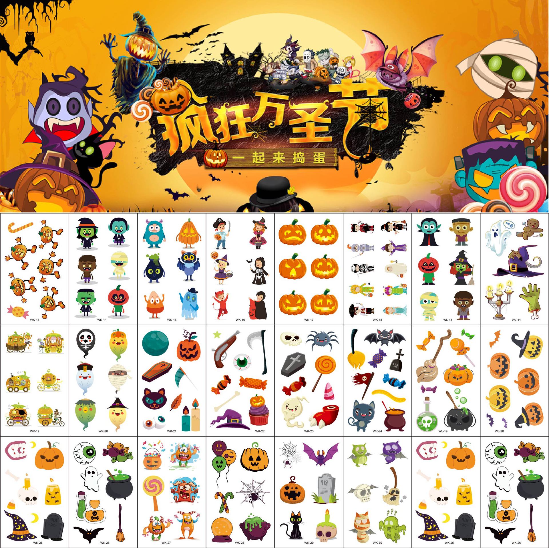 60種類の現物卸売りを繰り返さない新しい子供アニメハロウィーンの紋章にカボチャの紋章を貼ってメーカーに直接供給する