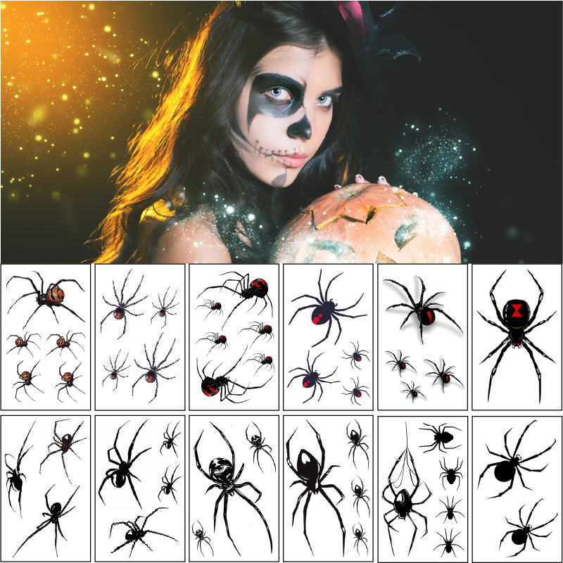 ハロウィーンのクモのタトゥーは国境を越えて奇妙な恐怖の顔防水クモの巣パーティータトゥーシールを貼っている