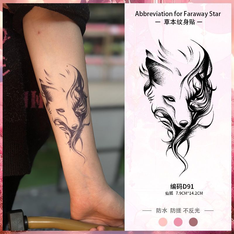 美しいアームパターンの妖精キツネのジュースタトゥーステッカー、防水、摩擦防止、無反射、長持ち