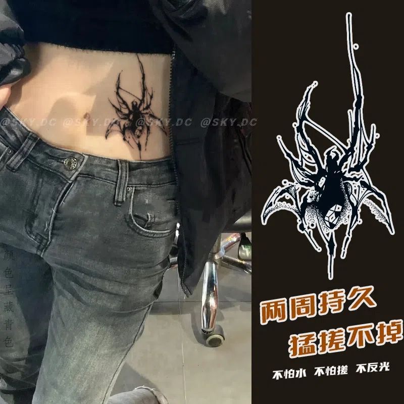 ダークスパイダータトゥーステッカー、ジュースアメリカンダークホットガール、甘くてクール、ウエストと胸、防水、長持ち、リアル